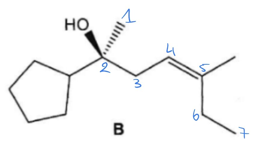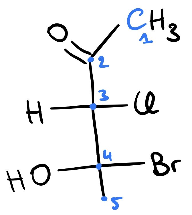 Je te mets la numérotation de la chaine carbonée ci-dessous: Comme la fonction principale est la cétone (double liaison O), il faut que le carbone qui la porte ait la numérotation la plus petite possible donc on commence par le CH3 du haut qui sera le premier carbone (C1). Ensuite pour les configurations, il faut que ça soit sur des carbones asymétriques, ici les seuls qu'il y a sont les carbones 3 et 4. J'espère que c'est plus clair (et désolée pour la réponse tardive !), n'hésites pas si tu as besoin !!0 points