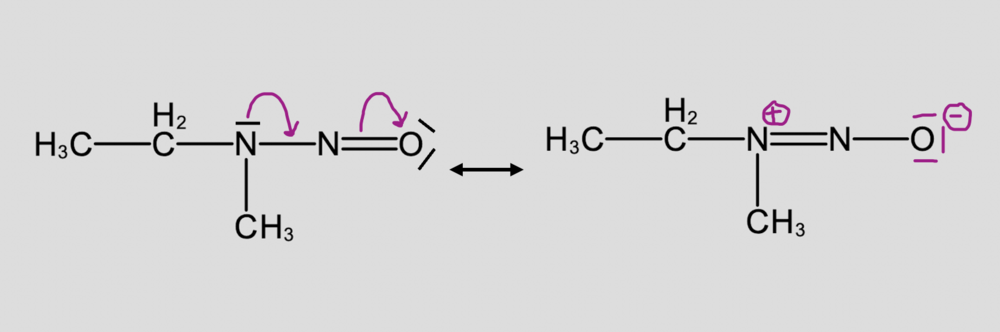 Hello @khatabi ! Cette forme est bien juste. Je vais t'expliquer pourquoi ce n'est pas possible que le N prenne un - et le O un + : - premiÚre maniÚre de voir les choses : un O en bout de chaine est mésomÚre attracteur : il attire les électrons vers lui, donc plus de chances qu'il prenne une charge -, et un N en milieu de chaßne est mésomÚre donneur, donc plus de chance de prendre une charge + - sinon une autre maniÚre de voir les choses, c'est que le N a une configuration 2s22p3 : ce qui signifie qu'il ne peut faire que 3 liaisons (avec les 3 électrons celibataires de la couche p) et éventuellement une 4e avec son doublet non liant (de la couche s). S'il portait un - sur la molécule de droite, alors ça voudrait dire qu'il ferait 4 liaisons et qu'il aurait un doublet non-liant en plus : ce n'est absolument pas possible et ça n'existe pas ! Je t'ai représenté ci-dessous les mouvements d'électrons avec les doublets non-liants pour que tu comprennes comment ça marche : Ici, en déplaçant le doublet non-liant du N, on crée un déficit en électron, qui crée cette charge + J'espÚre que c'est plus clair pour toi, sinon n'hésite pas si tu as d'autres questions et bon courage !0 points -