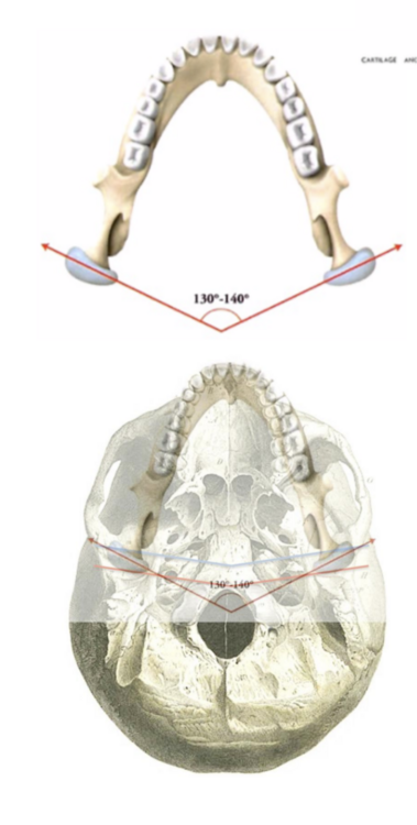 Coucou, pour moi le prof ne fait pas la diffĂ©rence dans son cours, il considĂšre que câest le mĂȘme axe. Sur ce schĂ©ma tu peux voir lâaxe condylaire/ du processus condylaire en rouge : il fait un angle de 130-140 degrĂ© et se croisent au 1/3 antĂ©rieur du foramen magnum. En bleu tu as lâaxe du tubercule articulaire et en arriĂšre lâaxe de la fosse mandibulaire, ces deux axes se croisent en avant du foramen magnum.0 points -