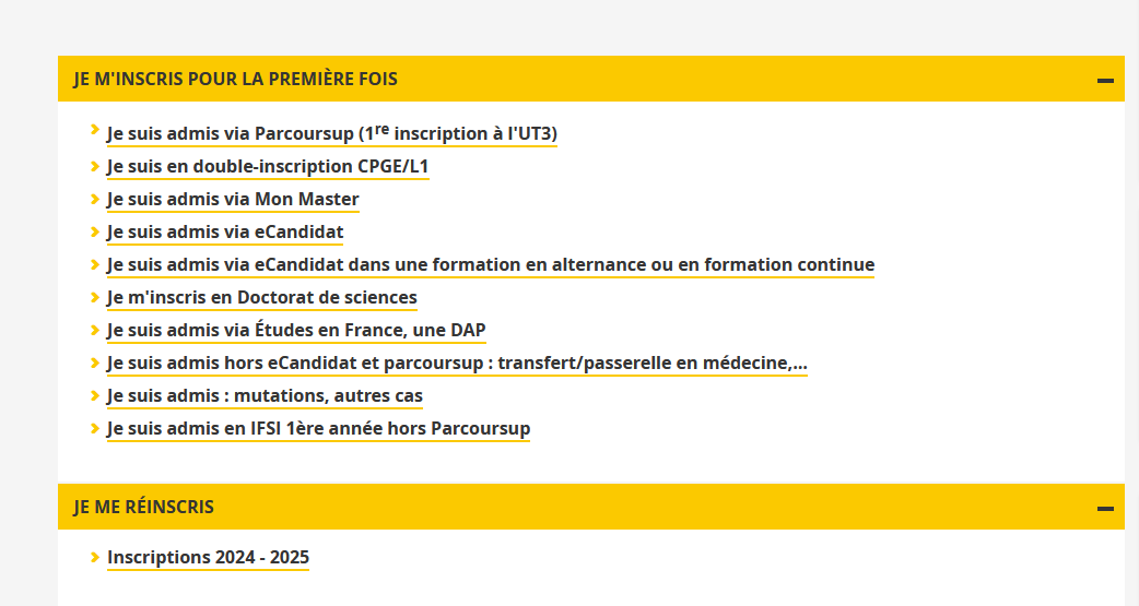 Vava_ Posted July 23, 2024 Author Posted July 23, 2024 Il y a 1 heure, davidd a dit : Yo ce message pourrait t'interesser : ~L’année universitaire est quasiment terminée il est maintenant temps de penser à la rentrée prochaine. Les inscriptions administratives (IA) seront ouvertes sur le site de l'université à l’adresse suivante à partir du 09 juillet 2024 : https://www.univ-tlse3.fr/inscriptions/reinscriptions Il est absolument indispensable que vous ayez finalisé (et que vous ayez payé) votre Inscription Administrative (IA) pour pouvoir faire votre Inscription Pédagogique (IP). Les étudiants boursiers doivent donc anticiper leur demande afin d’être à jour pour les dates d’inscription. La semaine de prérentrée est la semaine du 26 au 30 août 2024. La réunion de rentrée des étudiants inscrits en N2 chimie se tiendra le lundi 26 août 2024 à 13h30 en amphi Leclerc du Sablon Merci de bien regarder vos résultats d'admission à l'année (ADM, AJAC, AJ) sur votre ENT. Ce que vous voyez sur votre relevé de note est le résultat au diplôme de licence, qui est indiqué AJ tant que vous ne terminez pas votre licence.~ je n'arrive pas a distinguer la différence entre l'inscription administrative et celle pédagogique ?? Car je me suis inscrive, j'ai mon certificat de scolarité mais c'est tout Quote