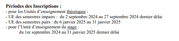 Ancien Responsable Matière ElCassoulet Posted July 23, 2024 Ancien Responsable Matière Posted July 23, 2024 Les périodes d'inscriptions font référence aux périodes pendant lesquelles tu pourras t'inscrire administrativement dans les UE, on s'entend bien, on ne parle donc certainement pas des périodes de candidatures qui sont déjà ouvertes pour globalement toutes les UE, et qui ont même déjà fermé pour certaines UE (notamment celles de santé publique). Tu peux donc dès maintenant candidater à des UE, tu ne pourras simplement pas t'inscrire pour le moment si tu as une réponse positive. @Jio Jio 1 Quote