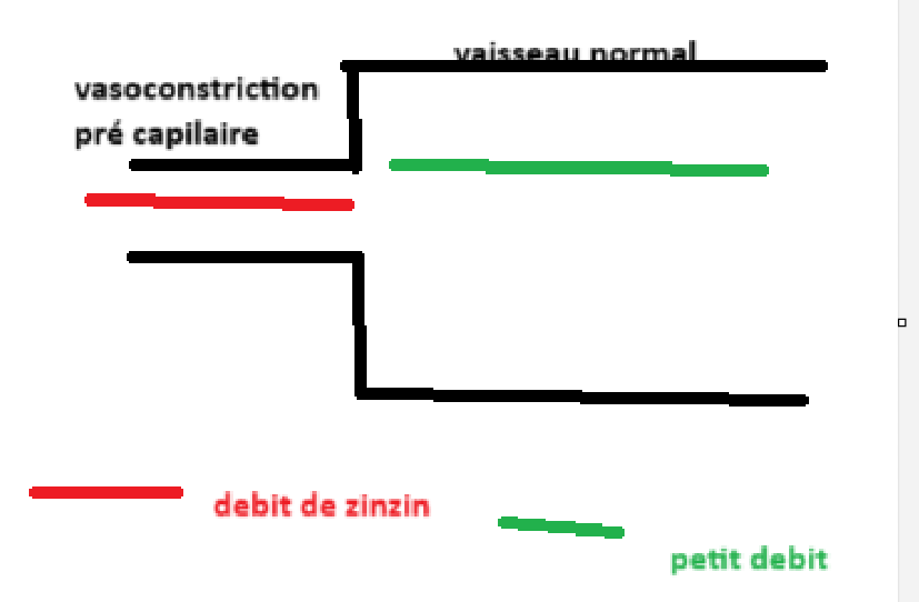 en faite en faisant une vasoconstriction pré capilaire tu limites le flux rentrant dans ton vaisseau ainsi le sang dans le vaisseau appuie moins sur les bord et donc par consequent la PRESSION CAPILAIRE va diminuer
