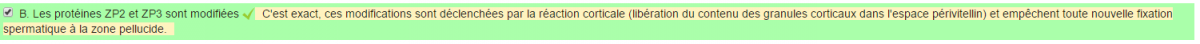 ClemD Posted October 6, 2016 Posted October 6, 2016 Bonsoir, Après avoir eu accès au cours de cette année concernant la fécondation, ce sont en effet les récepteurs Zp2 et Zp3 qui sont modifiés et non pas les protéines. Cependant , je ne sais pas si le professeur considère que récepteurs et protéines sont synonymes dans cet item, il faudrait que tu ailles lui poser la question au prochain cours.