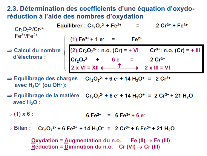 Siegfried Posted October 8, 2024 Posted October 8, 2024 Hey, je n'ai pas bien compris pourquoi le Cr2O72- n'avait pas pour nombre d'oxydation - II et pourquoi on ne prenait que le nombre d'oxydation du Cr (et pas de l'ion en entier) dans le calcul du nombre d'électrons. Aussi, comment déterminer le nombre d'oxydation du Cr, du coup ? Quote