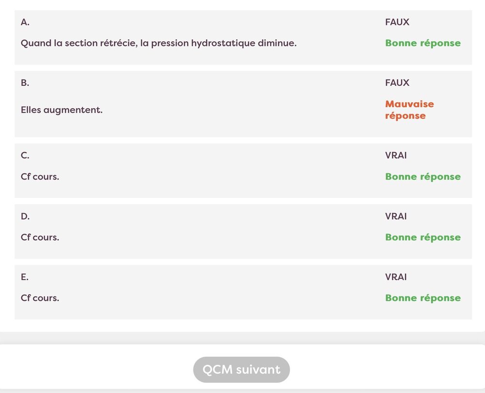 Guts31 Posted October 30, 2024 Posted October 30, 2024 Salut, tu peux m'envoyer la référence d’un des QCM où tu as vu ça ? Car pour moi, s'il y a un rétrécissement, le rayon r est diminué et donc la résistance à l'écoulement devrait augmenter Quote