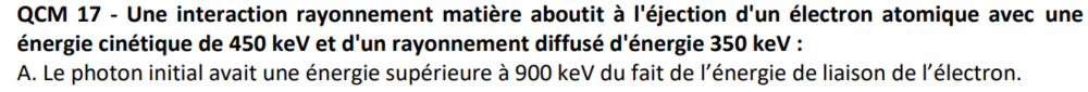 nourgayet Posted December 1, 2024 Posted December 1, 2024 Bonjour ! Voici le qcm et l'item me posant problème avec la correction correspondante. Je ne comprend pas d'où provient le 550 dans la correction, je pensais que c'était plutôt le 350 qu'il fallait ajouter puisqu'il n'y a pas d'énergie de liaison ? Mais dans le cas ou 550 serait bon pourquoi l'item est il faux puisque 1000 étant supérieur à 900 l'item est juste non ? Merci ! Quote