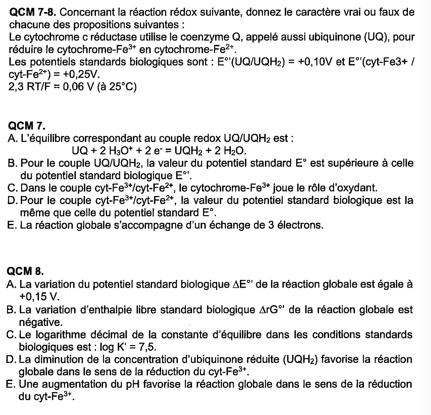 Solution lanouille Posted December 3, 2024 Solution Posted December 3, 2024 coucou @marinopharyngite oui en effet la proposition du cours à connaitre est : "au cours d'une transformation spontanée, l'entropie de l'univers ne peut pas diminuer", c'est pour cela qu'il est écrit faux le but de l'item ici est seulement de savoir si tu connais bien le principe du cours tu n'as rien dans le cours par rapport à la variation d'entropie dans une réaction non spontanée donc on ne peut pas savoir il faut juste retenir que l'entropie de l'univers ne peut pas diminuer et qu'elle ne peut augmenter que dans un système isolé j'espère t'avoir éclairé :) DJOLIPRANE, Shoufre and ilhamoxiciIline 2 1 Quote