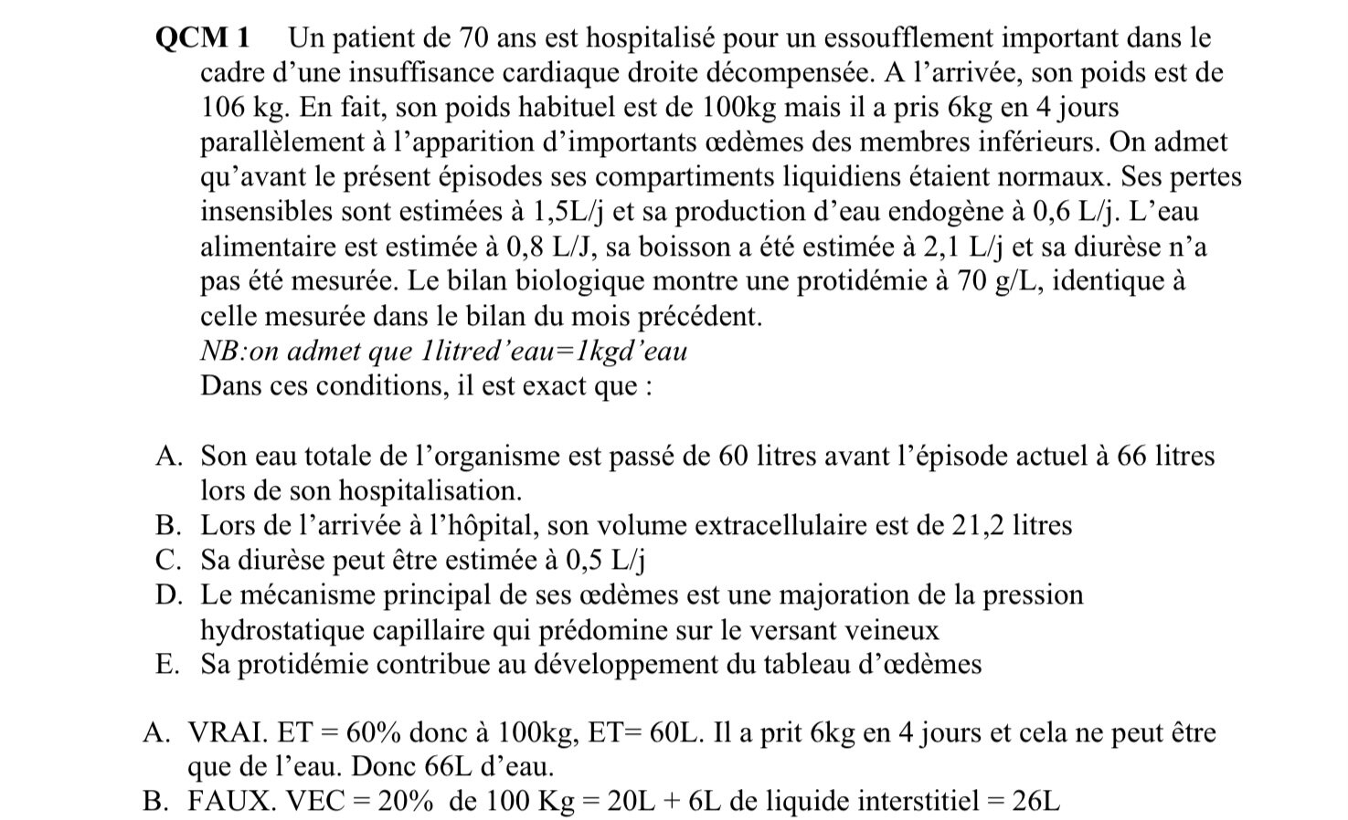 Cam_bdr Posted December 3, 2024 Posted December 3, 2024 hello j’ai une petite question un peu tardive mdr mais au niveau de l’item B pour ce QCM je ne comprends pas comment savoir si il faut prendre le poids de départ, ici 100kg ou celui du patient à l’arrivé, ici 106kg. Certains QCM font les calcules avec le poids de départ et d’autres avec le poids à l’arrivé je n’arrive pas trop à comprendre merci d’avance Quote