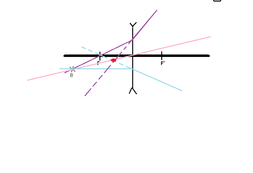 Sarra Posted December 14, 2013 Posted December 14, 2013 Je trouve que le tracé du rayon est correct ! Tu as ton rayon violet qui croise bien (enfin son prolongement croise) le rayon rose qui passe par l'origine et donc n'est pas dévié. Tu obtiens en fait l'image de B par la lentille divergente ( --> ton point rouge). Donc ton rayon violet est ok