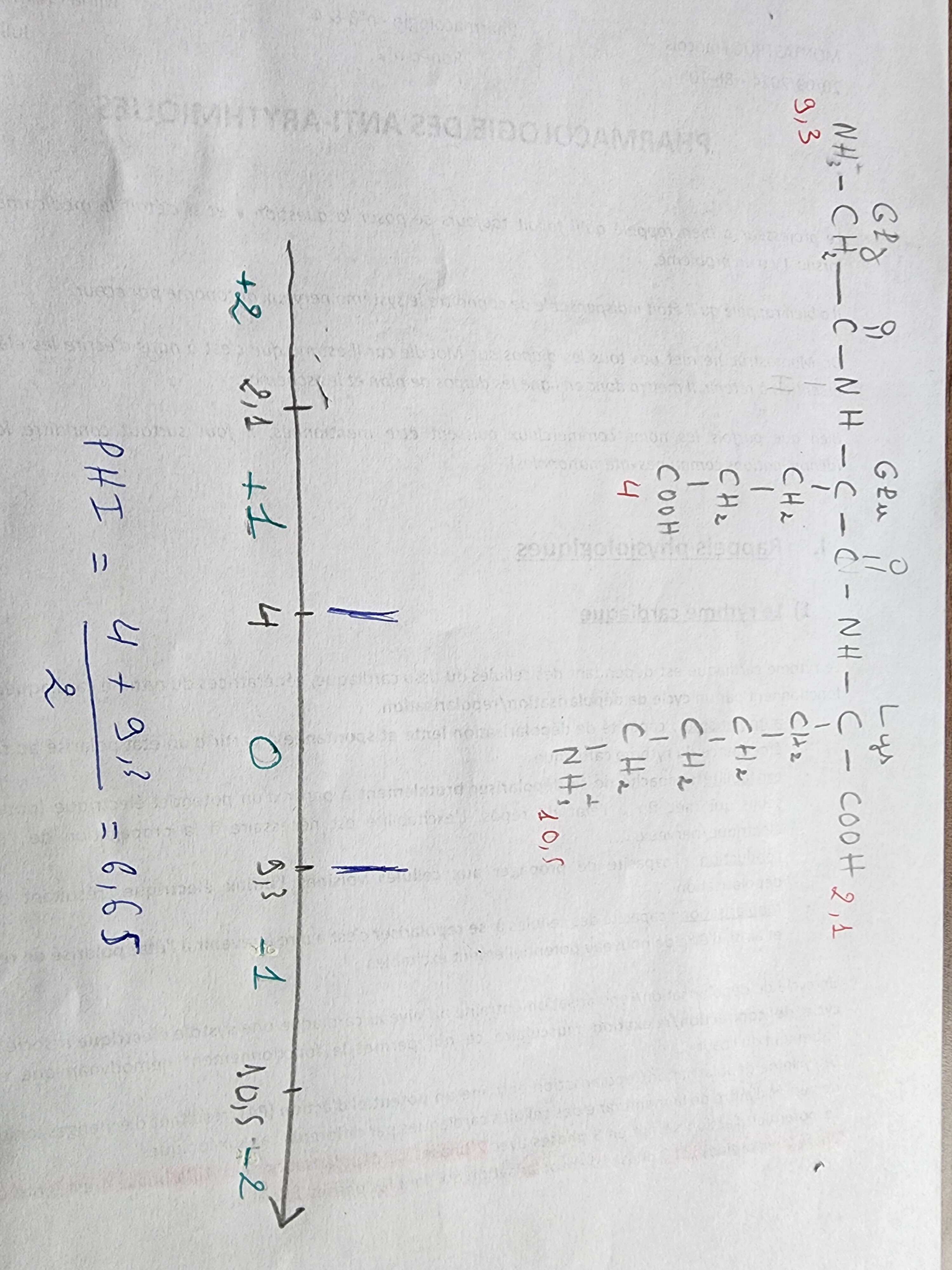 bêta-arezkin Posted December 7, 2024 Posted December 7, 2024 Bonjour Voici un schéma sur le qcm que vous aviez eu dans la colle de biochimie de cette année En gros tu prend les charges des extrémités qui contiennent des COOH ou des NH2 et tu trouve l'intervalle ou la charge est nulle et tu fais la moyenne des deux limites de cet interval sofiaspirine and dzinthesky 1 1 Quote