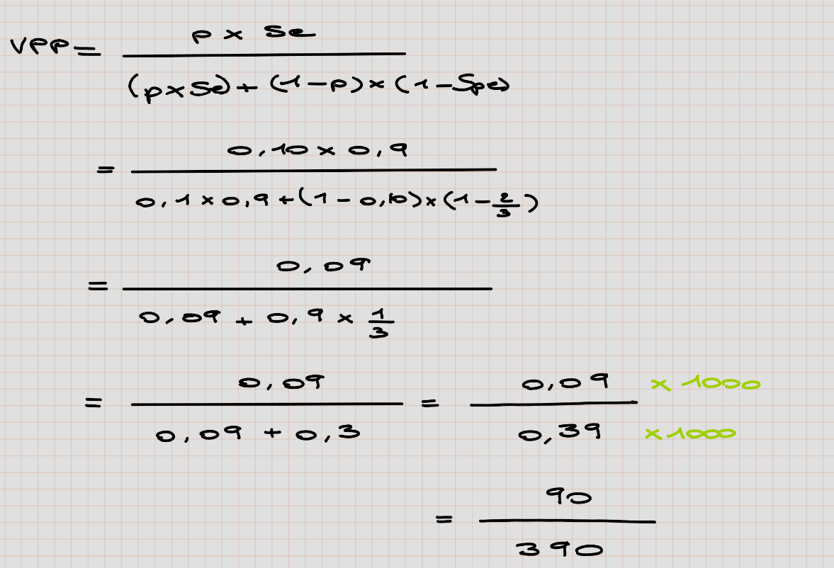 Solution Algernon Posted December 9, 2024 Solution Posted December 9, 2024 Salut @Catalyse ! Pour le deuxième QCM, il faut comparer les OR avec 1 : -> si OR > 1 alors ça représente un risque -> si OR < 1 alors ça représente une protection Ici on a : -> le risque associé au télétravail, on peut voir que l'intervalle comprend des valeurs entre 0 et 1 donc on peut dire que le télétravail confère une protection -> le risque associé à la fréquentation des bars, on a une intervalle dont les valeurs sont toutes supérieures à 1 donc on peut dire que ça induit un risque -> le risque associé à la pratique de sport en salle, notre intervalle comprend des valeurs à la fois inférieures à 1 et supérieures à 1 nous ne pouvons donc pas conclure, on ne peut pas savoir si c'est un risque notable ou non Pour le premier QCM maintenant : D'abord un point sur les données : p (prévalence) = 0,10 Sensibilité (Se) = 90 / 100 = 0,9 Spécificité (Spe) = 200 / 300 = 2/3 Je te mets mon calcul en photo parce que au clavier c'est pas très visuel :/ Est ce que c'est plus clair pour toi ? N'hésite pas si tu as d'autres questions :) Catalyse 1 Quote