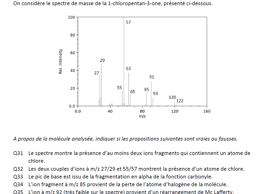 Responsable Matière ju.gulaire Posted January 24 Responsable Matière Posted January 24 (edited) Coucouuuu ici il te faut dessiner ta molécule dont on te donne la formule puis voir si un réarrangement de Mac Laferty est possible selon sa structure (C double liaison O et H en 6), à ce moment là tu "simule" ton réarrangement avec les flèches comme le prof fait dans sa diapo et tu calcules la masse du fragment obtenu ! Si tu as un fragment de 92 c'est bon (attention dans certaines questions on peut direct répondre selon si la masse proposée est paire ou impaire selon la règle de l'azote) Ici après avoir vu la molécule, le réarrangement est direct impossible car tu n'as pas le H en "1" → bref y a pas assez de carbones entre ta double liaison avec le O et ton H terminal https://ibb.co/YN4Z9ML Mais la démarche dont je te parle au début s'applique à toutes les molécules, parce qu'il y en a certaines où le réarrangement est possible et il faut dessiner la molec pour vérifier ! (cf QCM 6 d'entrainement) Les tuteurs n'hésitez pas à me corriger ! Edited January 24 by ju.gulaire Quote