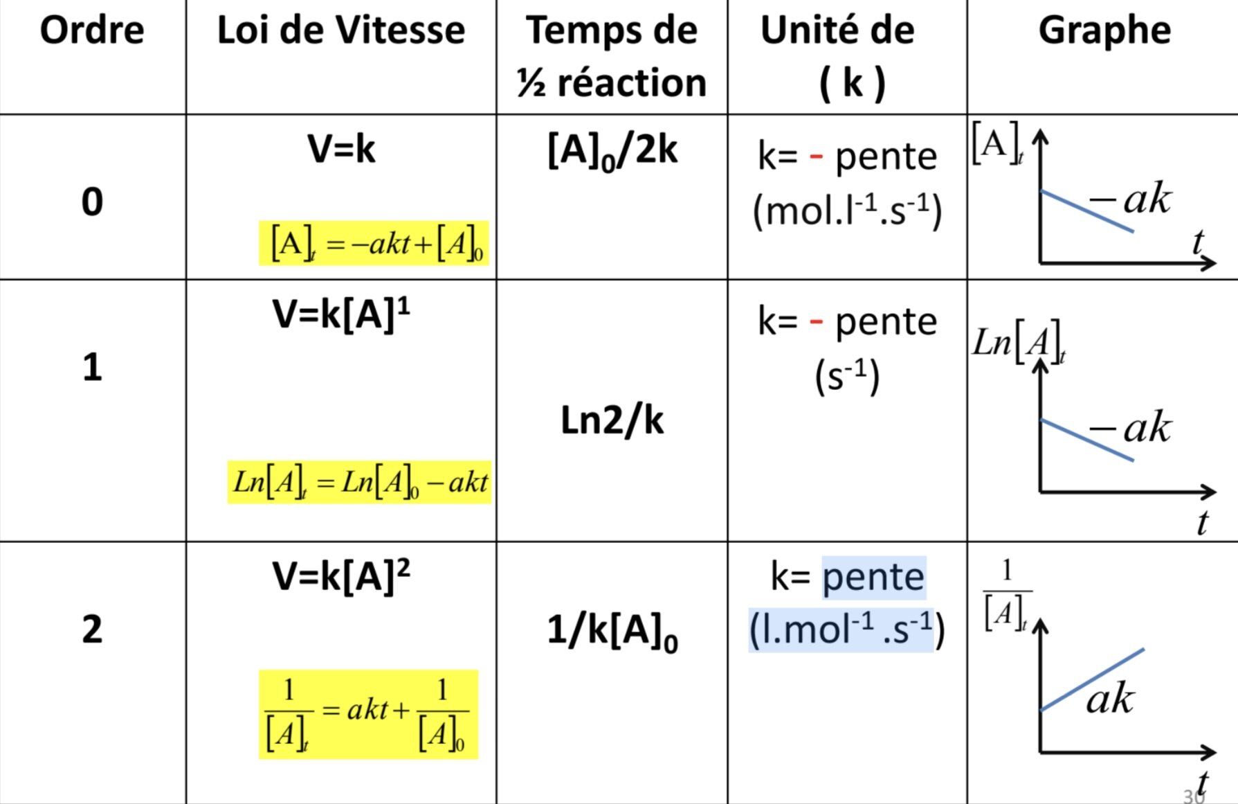 Responsable Matière Rayanodipine Posted January 25 Responsable Matière Posted January 25 (edited) Coucou @iso-TOP ! Je te mets ici un récapitulatif si ça t’aide à mieux visualiser les graphes! (attention la formule de t1/2 et K ici sont en prenant le coefficient stœchiométrique a=1) Edited January 25 by Rayanodipine malenaphte and rosembcéphale 1 1 Quote