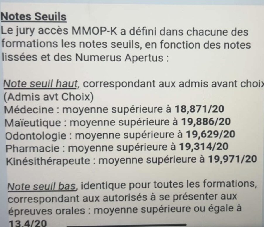 Tuteur leaaaaaa Posted February 7 Tuteur Posted February 7 Le 01/02/2025 à 12:43, Blue31 a dit : Bonjour, Voici les seuils des GA toutes filières confondues de l'an dernier. Encore une fois ce sont des chiffres qui doivent être pris avec des pincettes mais bon cela nous donne un indicateur. salut, j’ai un petite question concernant ces chiffres ci comment c’est possible d’être GA en médecine mais pas en maïeu, odonto, pharma et kiné ? est ce par ce qu’il y a plus de place en med ? Quote