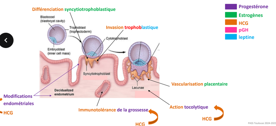 Ancien Responsable Matière Solution POMME Posted February 4 Ancien Responsable Matière Solution Posted February 4 Il y a 15 heures, PauliNébuline a dit : Salut! Est-ce que invasion trophoblastique et prolifération endométriale c'est la même chose? Sur ce schéma on ne retrouve que 2 des 3 actions des oestrogènes dans l'établissement et le maintien de la grossesse : Merci! Coucou, non ce n’est pas la même chose mais ce sont deux événements qui sont légèrement lié. Pour rappel l’invasion trophoblastique correspond à l’implantation de ton embryon dans l’endomètre. Pour que cette implantation est lieu il faut que l’endomètre soit préparé, cela ce fait grâce à la prolifération endométriale. En gros ton endomètre se prépare à accueillir l’embryon et pour cela il va entre autre grossir grâce à la prolifération. Je crois que un des prof avait même dit que en gros l’endomètre se transforme en gros coussin moelleux (c’est une image) pour accueillir l’embryon. Si jamais il n’y a pas d’implantation alors on a une baisse de la quantité d’œstrogènes (normalement sécrétée par le corp jaune mais comme il y a pas de fécondation il n’y a pas de corp jaune), on va donc avoir une dégradation de l’endomètre qui va retrouver une plus faible épaisseur et ainsi on reprend le cycle. Voilà j’espère que c’est un peu plus clair. PauliNébuline, Paulimère, Kz.22 and 2 others 2 3 Quote