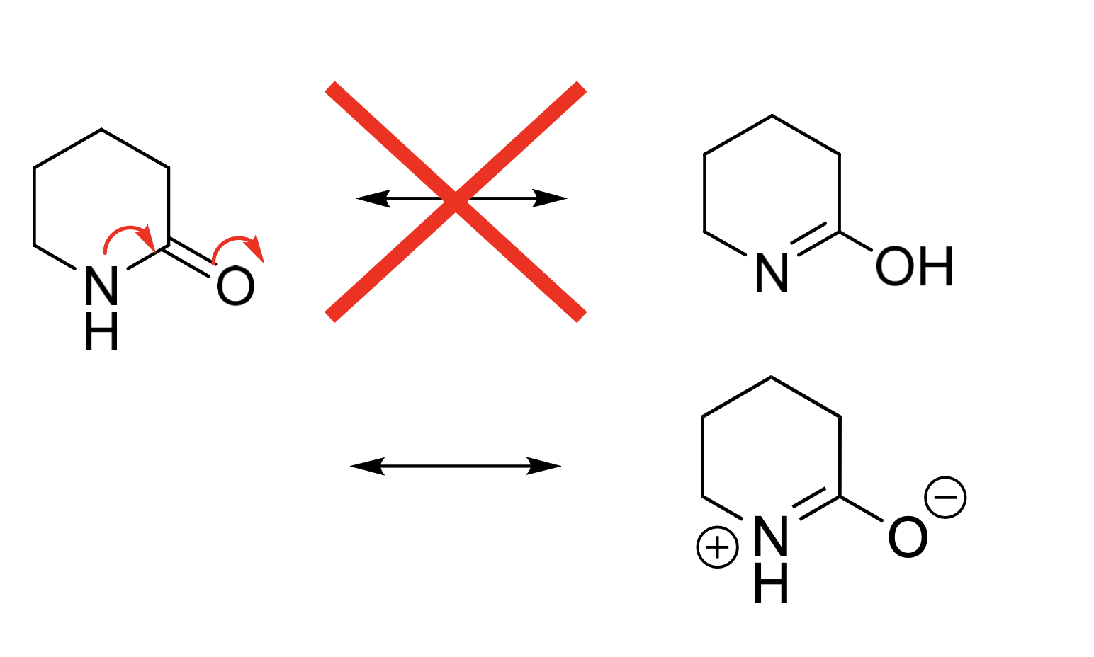 Coucou, en gros ton c=O est mésomère attracteur et ton N est mésomère donneur donc le N donne un doublet non liant il devient N+ parce qu’il a perdu des e- et ton O attire les e- et donc il en gagne et devient O-. C’est plus clair ?