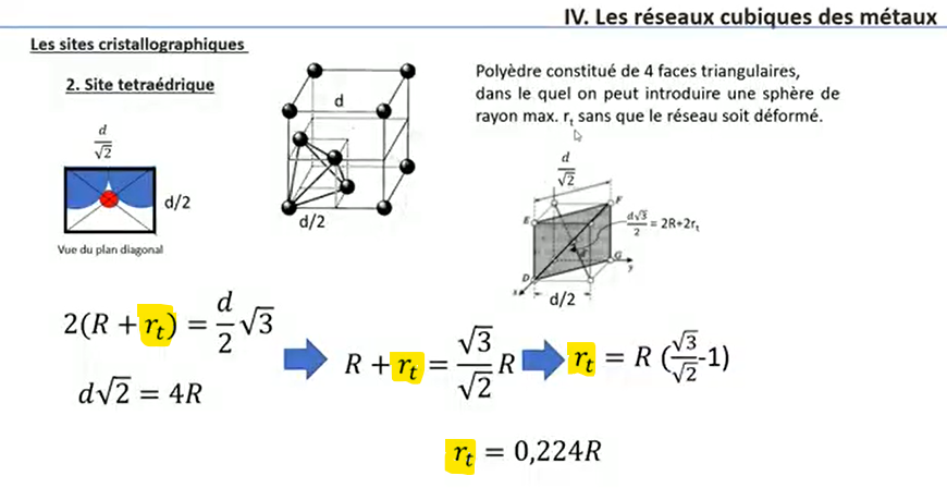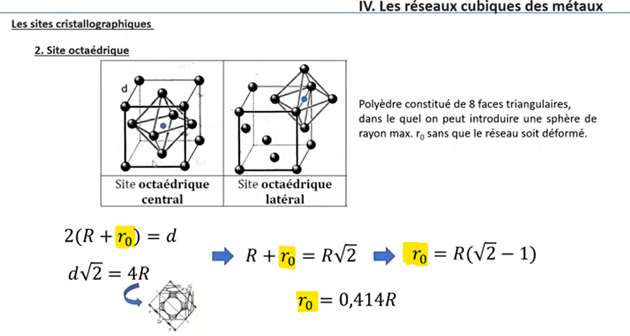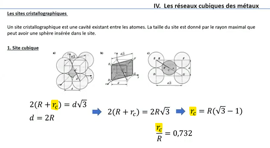 Lumena Posted February 16 Posted February 16 Bonsoir ou bonjour, Dans la vidéo disponible sur moodle concernant le thème 4 "Les réseaux cubiques" , la prof évoque comme indiqué dans le titre de ce message le rayon Rc (vous pourrez trouver des p'tites captures de ce dont je parle en surligné jaune) Ma question est à quoi ça correspond vraiment parce que sincèrement je vois pas spécialement l'intérêt dans le cadre de cette partie du cours où les "modèles éclatés" sont littéralement remplies de sphères (??) En fait je saisis pas forcément la notion.. ça voudrait dire que hypothétiquement on pourrait estimer la place restante afin de rajouter une sphère et donc on calcule une sorte de conjecture ? Est-ce que du coup on peut représenter ce "rc" quelque part ou c'est juste du vide ? Si quelqu'un a compris et peut m'expliquer en quoi ça consiste, en quoi ce serait utile dans le cadre de ce cours (j'ai cru comprendre qu'on va bosser sur des modèles "classiques" avec des atomes/sphères déjà placées donc pourquoi calculer ce "rc" puisqu'on a déjà les sphères réparties "correctement") ? Aussi, si jamais c'est représentable, est-ce qu'il serait possible de me montrer ce que ça représente sur un schéma de modèle parce que je clairement confuse. Voilà c'était tout mais c'était déjà énorme, force à nous et à celui qui trouve le courage de répondre à ce parchemin. PS : j'ai utilisé ici une notation pour ce rayon qui représente " le rayon maximal d'une sphère qui peut être introduite " mais en fonction des modèles, il peut changer avec "ro" ou encore "rt" (why not en vrai ?) Quote