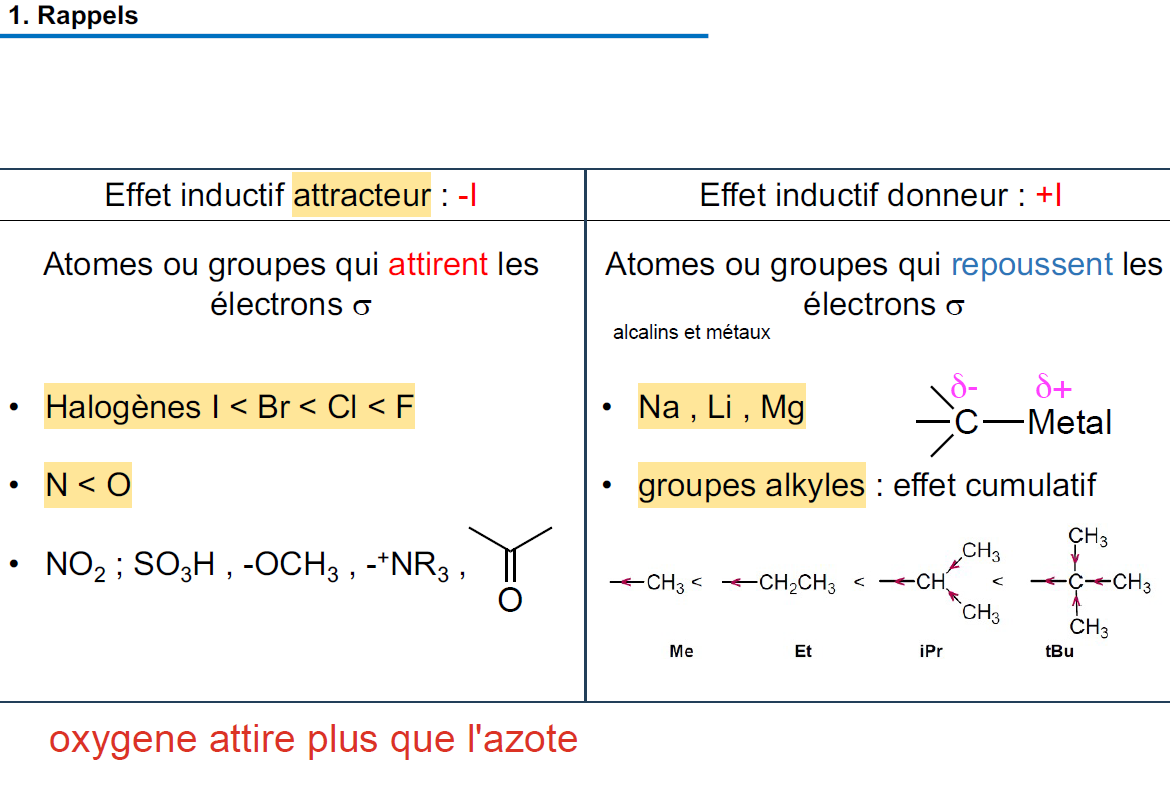 Solution DJOLIPRANE Posted February 20 Solution Posted February 20 salut @chapeau dans l'exemple que tu proposes on voit un carbocation c'est le C+ (celui ci a perdu des electrons) il faut donc savoir les groupements autour de ce C voir si ils sont attracteurs ou donneurs d'electrons! pour un C+ c'est donc les elements donneurs d'electrons qui rendront la molecule plus stable ! pour ca tu dois connaitre certains groupements si ils sont attracteurs ou donneurs voici 2 tableaux qui recapitulent tous!!!!! dans ton exemple la molecule 2 possede un C double liaison O et comme tu vois dans le tableau c'est effet attracteurs (à la fois meso et inductif) donc cette molecule et moins stable que la molécule 1!!! Est ce que c'est plus clair ? Bon courage lysopaïne, Pipas and chapeau 2 1 Quote