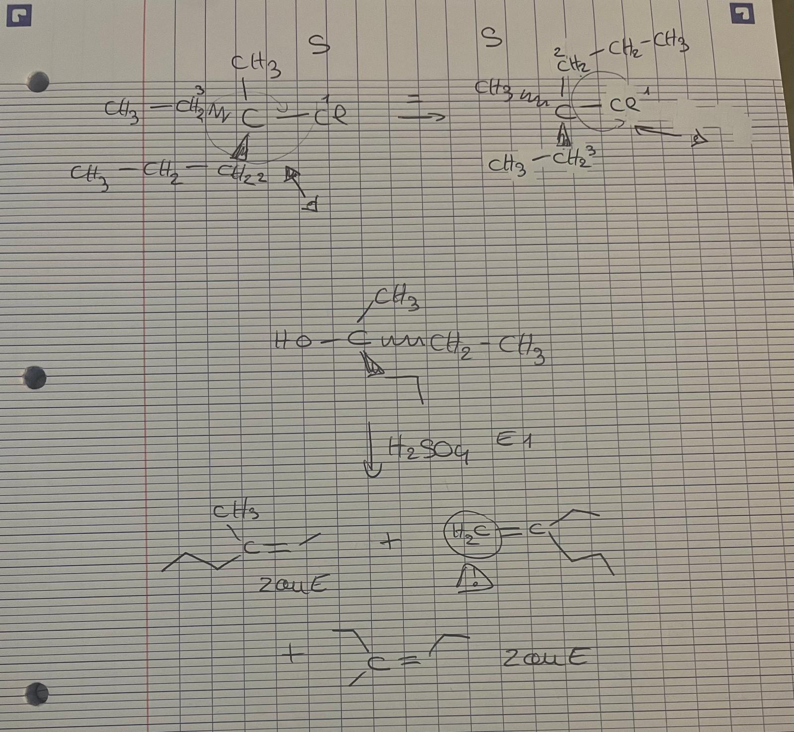 Solution Juju21 Posted February 22, 2025 Solution Posted February 22, 2025 Coucou, Alors pour ta dernière question on te donne de la soude concentrée dans un solvant aprotique c’est une élimination d’ordre 2. Si c’était dilué ça aurait bien était une substitution. Pour ta première question R et S en gros c’est dur à voire juste en visualisant parce qu’il faut regarder par en dessous la molécule pour que le ch3 soit derrière donc essaie de mettre le 4ème substituant derrière et normalement tu trouves bien S. Pour les diastéréoisomères je suppose que tu as dessiné les 3 produits de l’élimination mais fais attention il y’en a un qui n’a pas d’isomérie géométrique parce qu’il est de forme R=CH2. Voila ! Shoufre, egy, manoncocyte and 3 others 2 3 1 Quote