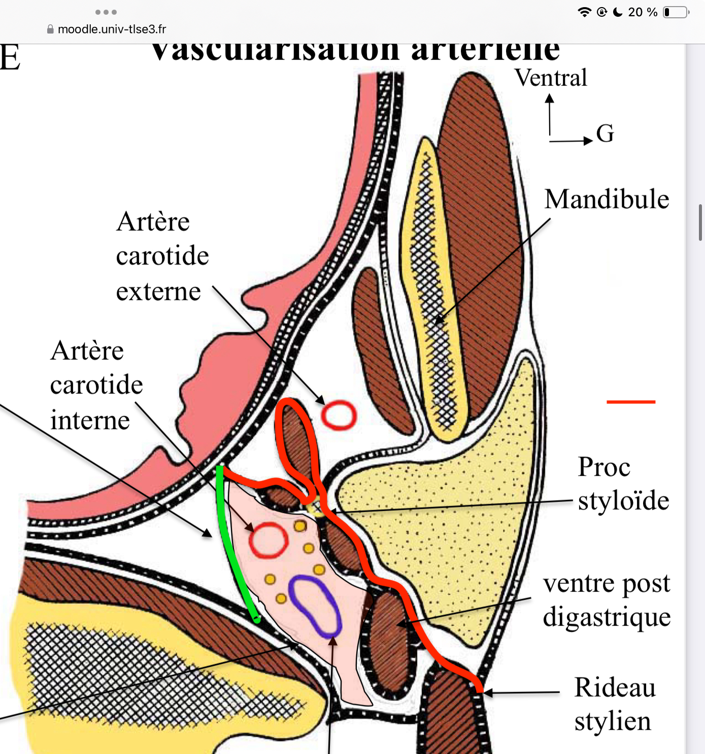 Ancien Responsable Matière em. Posted March 22 Ancien Responsable Matière Posted March 22 Il y a 5 heures, An-Schwann a dit : Salut pour litem 12 c marqué vrai, mais pour moi il est faux, d’après ce schéma du cours ça devrait être en dedans et pas en arrière Salut ! Tu parles bien du sujet type 2 ? Pour moi les deux sont vrais, l'artère carotide externe passe en arrière et en dedans du ramus mandibulaire, tu peux le voir sur cette diapo : https://zupimages.net/viewer.php?id=25/12/l9hc.png Bonne soirée ! An-Schwann and Gaétang 1 1 Quote