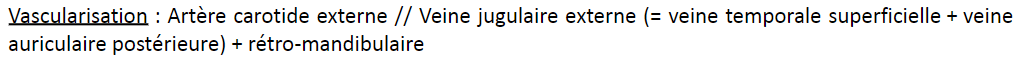 Responsable Matière PauliNébuline Posted February 28 Author Responsable Matière Posted February 28 Il y a 17 heures, em. a dit : Salut ! Désolée, j'ai pas très bien compris ta question, est ce que tu pourrais la reformuler stpp ? Pas de soucis! Dans le schéma du prof la v. rétromandibulaire donne la VJE et la v. faciale, dans le screen du poly on nous dit que la vascularisation veineuse se fait par la v. rétromandibulaire et la VJE mais on nous parle pas de la v. faciale. Donc je pense que j'ai mal compris qq chose car je ne vois pas comment le sang de la parotide qui va dans la veine rétromandibulaire peut ensuite aller que dans la VJE mais pas dans la v. faciale... Quote