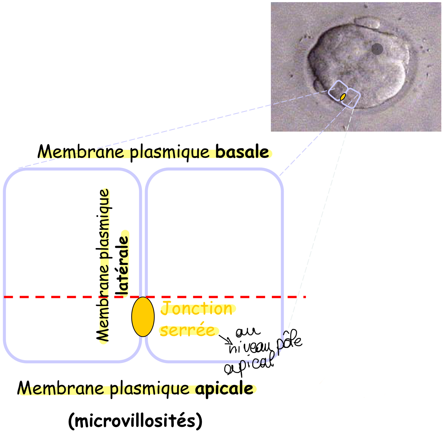 Ancien Responsable Matière Solution POMME Posted March 8 Ancien Responsable Matière Solution Posted March 8 Saluuut, voila un schéma qui pourra peut être t’aider à comprendre : En gros comme tu peux le voir tu retrouve des microvillosités uniquement au pole apical de tes cellules périphériques. C’est un peu logique car c’est cette endroit qui va être en contact avec l’extérieur de la morula. Je ne sais pas trop quoi rajouter de plus, n’hésite pas si tu as d’autres questions. Drsaucisse, framboise and Nentiqu 2 1 Quote
