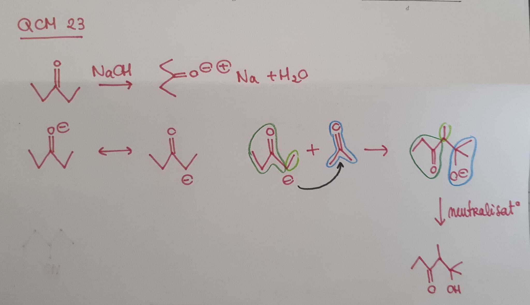 Responsable Matière ju.gulaire Posted March 9 Responsable Matière Posted March 9 4 minutes ago, PauliNébuline said: Re! Voici ce que je trouve pour le QCM 23 : J'ai essayé de te mettre des couleurs pour que tu puisses mieux voir la formation du cétol. ton schéma est super clair mais c'est pas l'ion énolate qui est en réactif pour la 2° réaction (ou j'ai très mal compris l'énoncé c'est fort possible ) HectoPascal 1 Quote