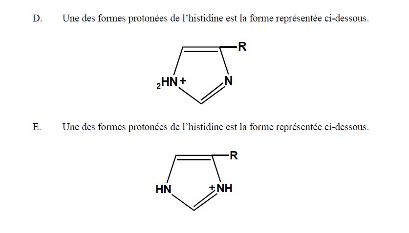 Solution RedKill65 Posted November 19, 2016 Solution Posted November 19, 2016 Parce que si tu appliques l'effet mésomère relatif à l'histidine dans la forme D tu te retrouves avec un azote divalent et un autre pentavalent ce qui ne coincide pas alors qu'avec la E tu as bien une résonance qui partage la charge + entre les deux azote qui se retrouve trivalent dont un est positif dans chaque forme limite