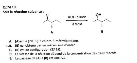 Responsable Matière Nentiqu Posted March 10 Responsable Matière Posted March 10 (edited) il y a 13 minutes, toti a dit : Bonsoir, ici la réaction est bien une Sn2, mais je ne comprends pas pourquoi le OH se retrouve derrière. Je pensais qu’avec l’inversion de Walden, la fonction OH allait simplement se mettre à l’opposé du Cl, donc "en bas" du Cl, et garder le trait plein. Coucou, c'est effectivement ce qui se passe, le groupement OH se met à l'opposé du groupement Cl, en allant en arrière, le trait plein du Cl signifiant qu'il était en avant, S'il avait été en bas en gardant le trait plein ça n'aurait rien changé il serait resté devant dans l'espace et on aurait pas eu d'inversion. En espérant que ça puisse t'aider, Bon courage ! Edited March 10 by Nentiqu Bastitine, Batman_sans_Robin and toti 1 1 1 Quote