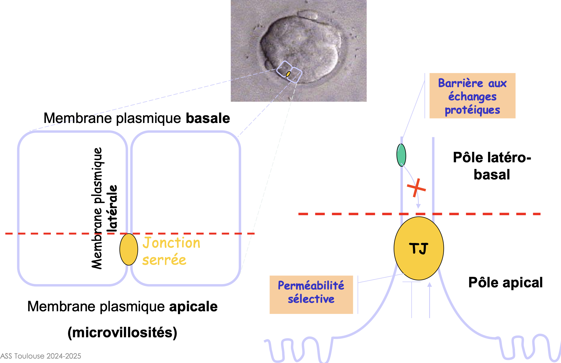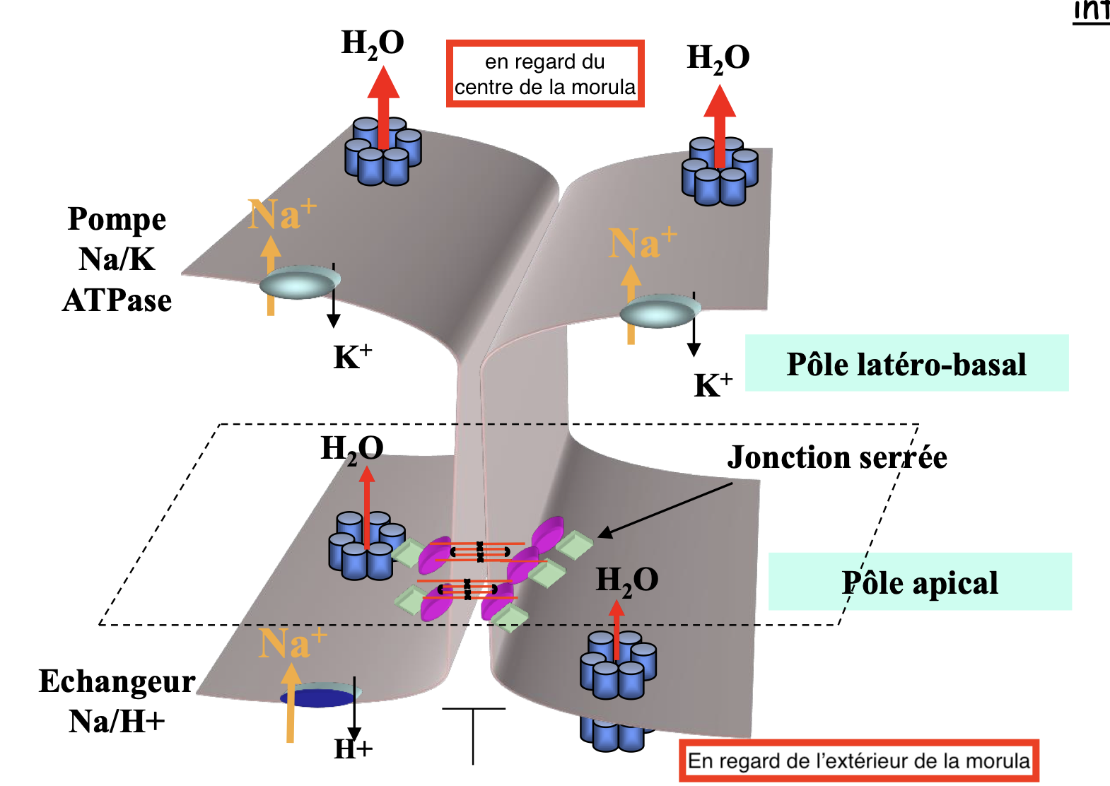 Solution ND11HB Posted March 13 Solution Posted March 13 Salut @sesamoïde, Lors de la compaction de la morula, ce sont les cellules périphériques qui se polarisent. Le pôle apical va correspondre à la zone de la membrane plasmique en regard de l'extérieur et le pôle basolatéral à la zone en regard du centre de la morula, lieu du futur blastocèle. Je te mis ici le schéma du cours pour que tu comprennes bien. N'hésite pas si ce n'est pas clair ou si tu as d'autres questions. Bon courage et bonne révisions :)) Drsaucisse 1 Quote