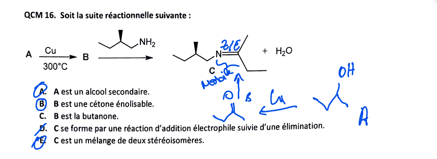 chapeau Posted March 19 Author Posted March 19 Salut @Sooo, de ce que j'ai compris moi, comme tu le vois et tu l'as mis dans l'item B, B est un cétone, donc tu regardes ta molécule C, tu comptes les carbones, il y en a 4 donc c'est un butane. Bastitine 1 Quote