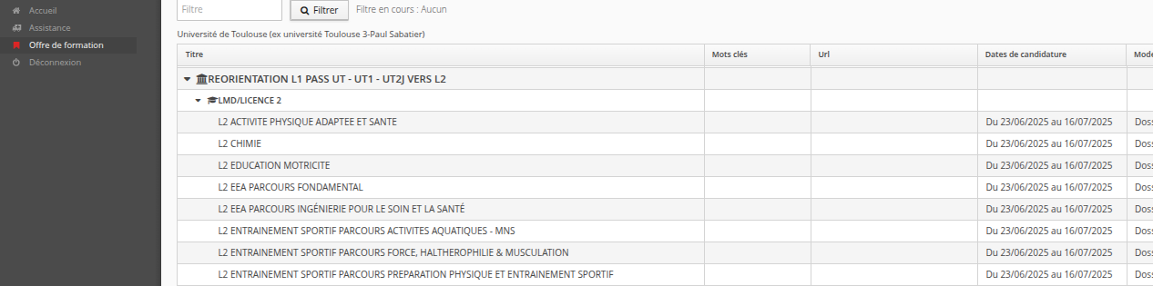 Panabenz Posted April 22 Author Posted April 22 45 minutes ago, Dr_Zaius said: Coucou @Pany_K ! Je pense que la scolarité Pass/L.AS vous fera un petit mail pour tout vous expliquer, mais tu peux dors et déjà te rendre sur e-candidat, créer et compléter ton compte et regarder régulièrement si les formations sont ouvertes (je crois qu'il y a les dates dessus) : https://ecandidat.univ-tlse3.fr/#!accueilView Bon courage Hello merci pour ta réponse :) parce que j’ai rien reçu jusqu’à maintenant… là je commence à me tracasser un peu. Est-ce que tu connais les dates limites au hasard? Quote