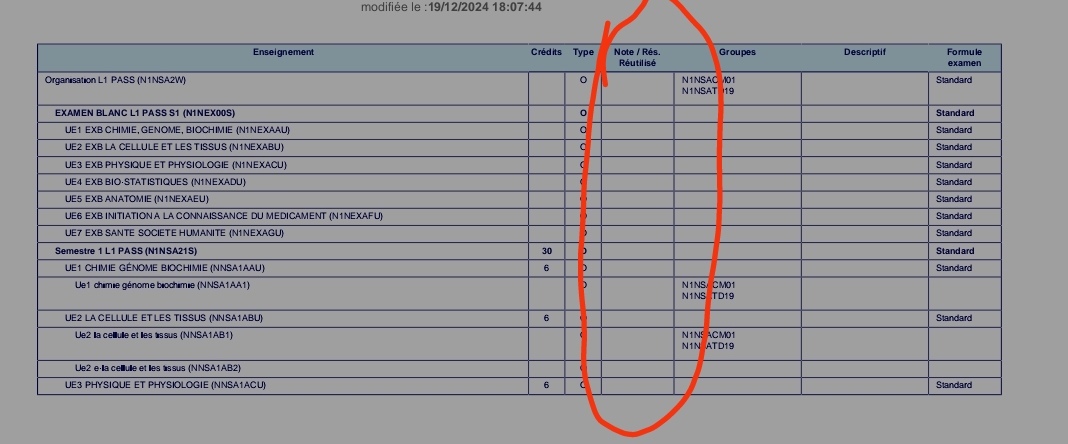 Responsable Matière An-Schwann Posted May 2 Author Responsable Matière Posted May 2 1 hour ago, Zouuuaulit said: Salut !! Est ce qu'il te serai possible de mettre un peu plus de contexte s'il te plait pour qu'on puisse t'aider au mieux ? Merci d'avance ! Saluttttt, A la find e l'inscription, ils te font télécharger un document, avec les filières que ta candidaté, et il y a aussi toute les matière comme ci dessus et il y a cette colonne que j'ai entouré qui semble devoir contenir nos résultats mais ils n'y sont pas est ce pareil pour tout le monde Merci Quote