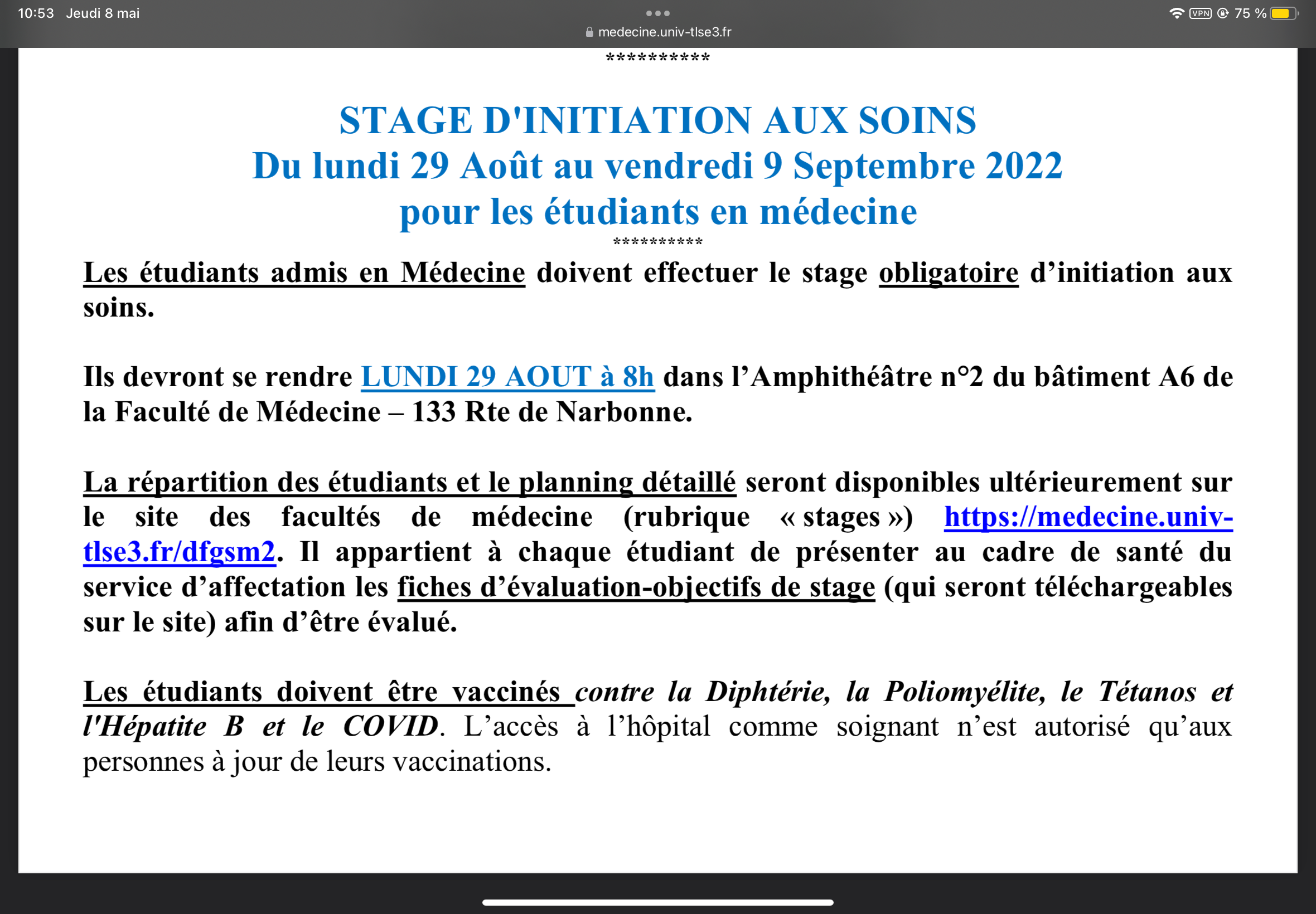mimilasouris Posted May 8 Posted May 8 (edited) Pour le stage de dentaire de l’année dernière j’avais vu ça mais je sais si ça vaut pour médecine donc renseigne toi en demandant à la fac ce sera plus sûre je pense Update : en 2022 il fallait aussi les vaccins obligatoires Edited May 8 by mimiabs45 Quote