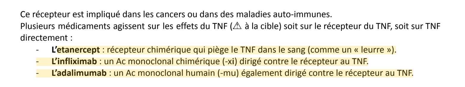Cédrôle Posted October 17 Posted October 17 Bonjour, Sur le poly dans le chapitre des récepteurs enzymatiques il est indiqué que l’infliximab et l’adalimumab agissent sur le récepteurs, mais en lisant les messages ci-dessus + les corrections des QCMs, il semble que c'est sur TNF directement. Quote