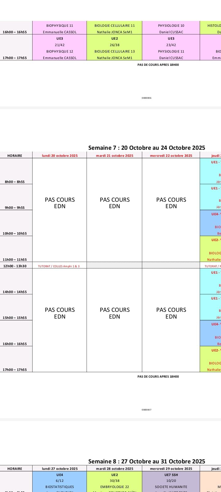 Responsable Matière An-Schwann Posted September 17 Responsable Matière Posted September 17 6 minutes ago, Juju82 said: Bonjour j'ai vu sur notre emploi du temps de CM que sur trois jours on avait marqué pas cours EDN quelqu'un peut il m'expliquer se qu'est les EDN et pourquoi on a pas cour ducoup Salut! c’est car les amphis sont pris pour faire passer les EDN au 6eme Année de médecine ! (Le concours écrit de l’internat) Quote