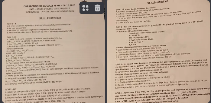 phosphatidylcoco Posted October 6 Posted October 6 Bonjour, il me semble qu’il y a erreur sur la correction du QCM 5C « l’osmolalité est d’environ 0,36osm/L » elle est considérée comme vrai. Or l’osmolaLité s’exprime en osm/kg non ? Ce qui considérerait le QCM comme faux. Quote