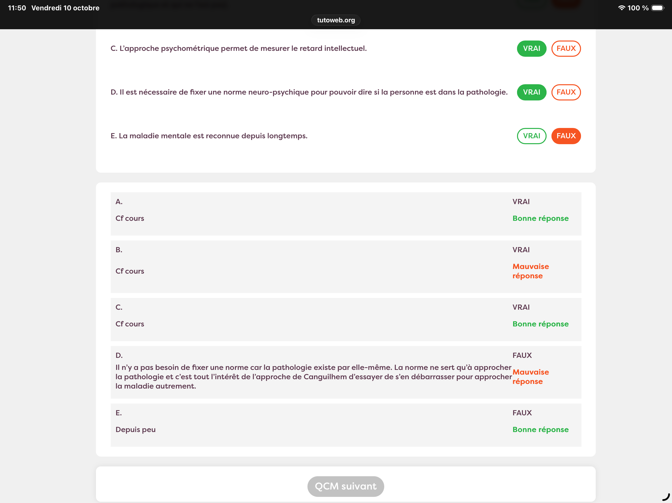 Tuteur Solution Ananas_31 Posted October 10 Tuteur Solution Posted October 10 (edited) Salut, je suis d’accord avec toi cela ne colle pas avec le cours du tutorat, Mais je pense que la notion de cours attendue ici est la notion de normativité biologique de Canguilhem qui explique qu’en fait il n’y a pas une seule et même norme pour tout le monde mais que la norme entre le normal et le pathologique est propre à chacun mais en soit il existe tout de même une norme même si elle est subjective. Je trouve cela un peu ambigu mais j’aurai tendance à dire qu’il vaudrait mieux suivre le cours. Il serait judicieux de peut être poser la question au prof si tu en as l’occasion pour vraiment être au clair. n’hesite pas si ma réponse n’est pas tout à fait claire je reste à ta disposition Edited October 10 by Ananas_31 ethanastomose, lucasdlng, Batman_sans_Robin and 1 other 3 1 Quote