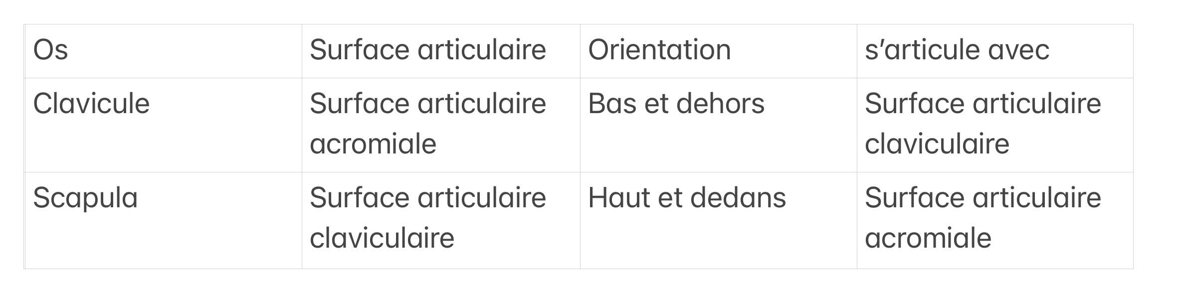 SOUSS Posted October 12 Author Posted October 12 il y a 17 minutes, LIRIE a dit : Je t’ai fait un petit tableau j’espère que ça t’aidera ! :) Aaaa super je crois que j’ai compris c’est que la surface articulaire acromiale appartient à la clavicule et inversement … JTE REMERCIE Dodopamine2.0 1 Quote
