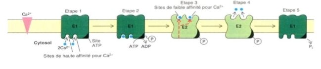 Solution MahelpMeDoc Posted October 12 Solution Posted October 12 Salut Je vais essayer de ne pas dire de bétise, Comme il est marqué dans le cours, pour la contraction musculaire par exemple, il y a aura une libération de Ca2+ dans la cellule. Cette libération se fait par des canaux calciques qui vont s'ouvrir, le calcium inonde alors le cytosol grace à son gradient électrochimique (la concentration cytosolique est très nettement inférieure à celle en extracellulaire) : c'est donc du transport passif (sans consommation d'énergie). MAIS pour rétablir le gradient du Ca2+ et relâcher le muscle, d'autres structures vont entre en jeu : les pompes ATPasique à Ca2+ qui elles (comme le montre le schéma du cours) utilise de l'ATP pour faire sortir le calcium du cytosol : C'est donc du transport actif primaire sur le schéma. Dans ton QCM, il ne parle que des canaux calciques qui permettent de libérer du calcium dans la cellule, et non de ceux qui le pompent hors du cytosol. C'est pourquoi la C est fausse. J'espère avoir été clair et bonne soirée ! Nentiqu and An-Schwann 2 Quote