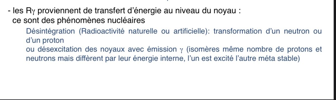 Tuteur Solution juléscalope Posted October 14 Tuteur Solution Posted October 14 Pour moi, c'est parce que lorsque tu vas avoir des phénomènes de désintégrations, tu vas générer des e- ou e+ qui vont pouvoir eux aussi réagir avec la matière autour et donc provoquer des excitations. Cette matière excitée autour sera elle, à l'origine des rayons y Donc que ce soit de la désintégration ou alors de la désexcitation, tu vas forcement retrouver des rayons y ( ou photon y ) car il va y avoir des phénomènes d'excitations qui seront soit directs ou non Lolordose and HectoPascal 1 1 Quote