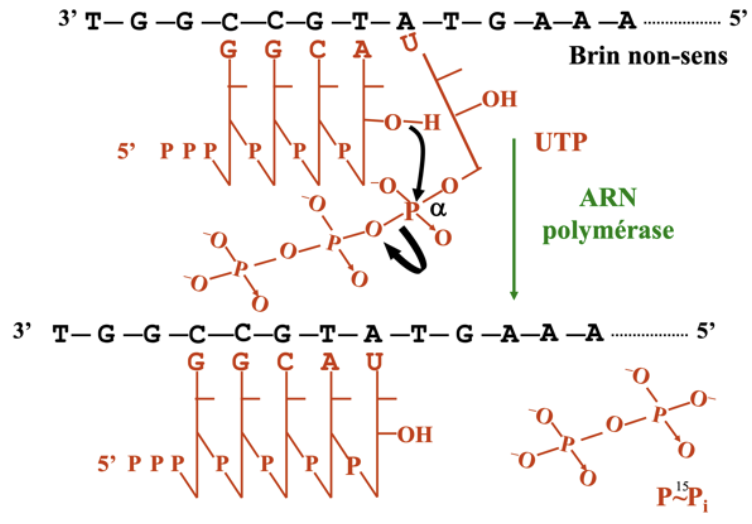 letartare06 Posted October 19 Author Posted October 19 il y a 10 minutes, emma-tie a dit : Salut ! Déjà, comme l'a dit @brownie : L'élongation de l'ADN par l'ADNpol se fait bien de 5'-> 3' : le premier nucléotide de la chaine est en 5' (avec 3 phosphates) et le dernier sera en 3' ; les prochains dXTP seront ajoutés dans le sens 5'-> 3' (sens de déplacement de l'ADNpol): ATTGC + A… 5' ---------> 3' La liaison phosphodiester entre 2 nucléotides se fait entre le carbone 3' de l'ose du premier nucléotide et le carbone 5' de l'ose du deuxième nucléotide : d'où le sens 3' -> 5' Y'a un schéma qui permet de bien visualiser les sens 5'-3' : Pour ce qui est de la transcription : L'ARN polymérase : lit le brin non-sens/matrice dans le sens 3'->5' MAIS synthétise le néo brin d'ARN dans le sens 5'->3' (toujours élongation dans me sens 5'->3') : Il y a 2 heures, brownie a dit : Coucou, Alors c'est l' élongation qui se fait du 5' vers le 3' mais pour accrocher les base en elles c'est le 3' que l'on rapproche du 5' il y a 11 minutes, Célintestin a dit : Salut, pour compléter la réponse de @brownie : Si on te demande le sens d’élongation : c’est 5’ -> 3’. Si on te demande le sens de formation de la liaison entre les nucléotides : c’est entre le 3’ de l’ose du nucléotide précédent et le groupement phosphate en 5’ du nucléotide suivant. Ensuite la professeur parle aussi des activités enzymatiques des différentes ADN pol qui interviennent dans la réplication et cela peut amener de la confusion, donc pour résumer : - polymérase 5’ -> 3’ : synthèse de l’ADN dans le sens 5’ -> 3’ à partir de l’extrémité -OH en 3’ du dernier nucléotide - exonucléase 5’ -> 3’ : élimination des amorces dans le sens d’élongation de l’ADN - exonucléase 3’ -> 5’ : l’enzyme peut reculer pour éliminer le dernier nucléotide (ex. Proof-reading) Et enfin la synthèse des brins d’ADN se produit différemment en fonction du brin direct et indirect. Pour le brin direct (ou précoce), le sens 5’->3’ et identique au sens de déplacement de l’œil de réplication. Il y a d’abord synthèse d’une amorce d’ARN au niveau de l’origine de réplication puis élongation d’un nouveau brin d’ADN SANS interruption jusqu’à la fin. Pour le brin indirect (ou retardé), le sens 5’->3’ est inverse au sens de déplacement de l’œil de réplication. Il y a d’abord synthèse de plusieurs amorces d’ARN tous le long du brin d’ADN puis élongation de l’ADN entre chaque amorces d’ARN. Dans un second temps les amorces d’ARN sont éliminés et remplacé par des fragments l’ADN. Cependant ils ne sont pas liés entre eux et c’est ce qu’on appelle les fragments d’Okazaki. Il faut ensuite que l’ADN ligament passe pour les lier et former le nouveau brin d’ADN. N’hésite pas à nous demander plus de précisions ! Ah oui d'accord merciii bcp mais en fait j'arrive pas a voir dans les schémas des QCM des annales et des TD qui est quoi qui fait quoi et tout parce que pour moi c'est les mêmes flèches. Merciii Quote