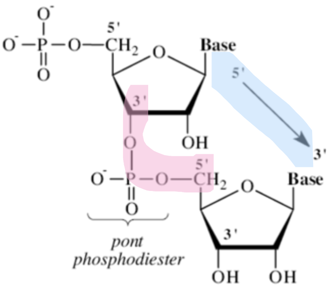 Tuteur emma-tie Posted October 19 Tuteur Posted October 19 (edited) Salut ! Déjà, comme l'a dit @brownie : L'élongation de l'ADN par l'ADNpol se fait bien de 5'-> 3' : le premier nucléotide de la chaine est en 5' (avec 3 phosphates) et le dernier sera en 3' ; les prochains dXTP seront ajoutés dans le sens 5'-> 3' (sens de déplacement de l'ADNpol): ATTGC + A… 5' ---------> 3' La liaison phosphodiester entre 2 nucléotides se fait entre le carbone 3' de l'ose du premier nucléotide et le carbone 5' de l'ose du deuxième nucléotide : d'où le sens 3' -> 5' Y'a un schéma qui permet de bien visualiser les sens 5'-3' : Pour ce qui est de la transcription : L'ARN polymérase : lit le brin d'ADN non-sens/matrice dans le sens 3'->5' MAIS synthétise le néo brin d'ARN dans le sens 5'->3' (toujours élongation dans me sens 5'->3') : Edited October 19 by emma-tie POMME, jujéjunum, Lénadénine and 2 others 4 1 Quote