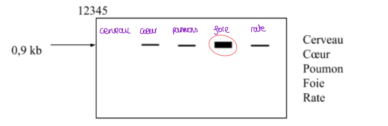 letartare06 Posted October 23 Author Posted October 23 il y a 8 minutes, lenadénine a dit : Coucou ! Je vais essayer de prendre pas à pas les QCMs n’hésites pas à me dire si tu comprend pas quelque chose. Et pour mettre des images tu peux utiliser zip images par exemple ça te créer un lien direct vers l’image ! QCM 2: BCE A. Effectivement la PCR n’est pas quantitative mais ici on te montre un northern Blot qui étudie la quantité d’ARN dans les organes donc on voit bien que tous les organes n’expriment pas le gène à un taux semblable. B. La bande correspondant au foie est très grosse donc il y a une grande quantité d’ARN C.cf cours D. L’ARNm comporte des zones qui ne sont pas traduites donc qui ne donne pas d’acides aminés lors de la traduction et la d’après le northern Blot on a un ARNm de 900 b qui ne pourront donc jamais donner 300 acides aminés lors de la traduction vu qu’une partie ne sera pas traduites donc donc ce sera moins de 900 bases qui seront traduites. E. C’est vrai parce que il se peut qu’il y ait une très petite quantité qu’on a pas pu détecter en Northern Blot donc avec la RT PCR on pourra exactement déterminer si ce gène est présent. QCM 3:BCDE A. Ici on a étudié qu’un seul exon attention on peut pas généraliser ça. B. On voit bien que plusieurs bandes de tailles différentes ont migré donc l’exon a été muté et digéré par HindIII nous laissant donc un allèle non muté à 250 pb car pas digéré et un allèle muté au niveau de la base 100 nous laissant donc deux morceau d’exon de 100 et 150 pb. C. On ne voit pas de bandes plus courtes que 250 pb donc sur ce qui a été étudié il n’y a pas de mutation. D. Effectivement c’est probable car on voit pas de bande à 250 pb donc on imagine qu’ils ont tous subi la mutation. E. Sur celle là je suis pas sure mais je dirai que pour le sujet 1 et 2 oui y’a bien un allèle à 250 pb et pour le 3 ème je suppose que c’est parce que l’addition des 2 bandes nous donne bien 250 pb donc effectivement l’exon 4 a une taille normale sans digestion? QCM 4: ABC A. Alors je suis pas tout à fait d’accord avec cet item car une PCR amplifie les exons et les introns donc dans ce cas ça nous ferait plus que 900 pb mais on nous donne pas le nombre de pb pour les introns… J’aurai dit que c’était juste si on faisait une RT PCR du coup car là effectivement ce sont uniquement les exons qui sont amplifiés. B. Oui c’est possible C. (Toujours en RT PCR du coup je serai d’accord) on aurait bien 100+150+50+200=500 pb. D. Non on utilise la Taq polymérase qui résiste à la haute température de la PCR E. Si l’hybridation des amorces ne se fait pas correctement, on aura donc pas tous les produits d’amplification pour que ça marche. Voilà j'espère avoir pu t’aider ! Si jamais tu as des questions plus spécifiques sur ces QCMs n’hésites surtout pas on pourra revenir sur un des points si besoin ! Bon courage à toi! Je n'arrive pas avoir de qu'elle bande tu me parles pour le foie. J'ai compris tes explications mais j'arrive pas avoir dans le dessin pour me repérer. Merciii Quote