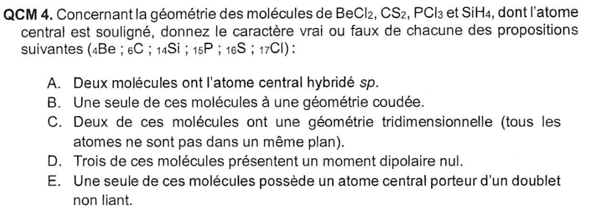lou.otn Posted November 2 Posted November 2 Je rebondis sur l’exercice, pourquoi le premier item est vrai ? Quand je dessine mes atomes je ne vois que des liaisons sp3 sauf pour CS2 où je trouve sp2. Je pense que j’ai un problème de méthode à ce niveau si vous avez des explications je suis preneuse :) letartare06 1 Quote