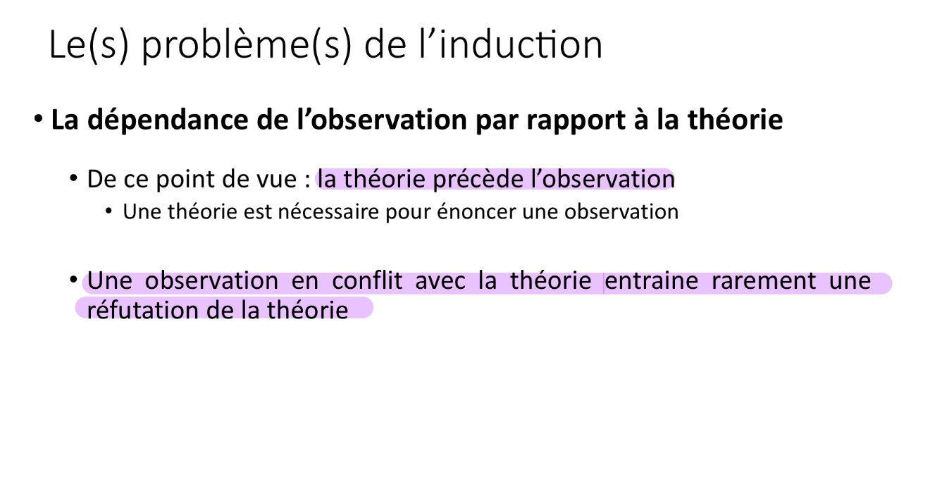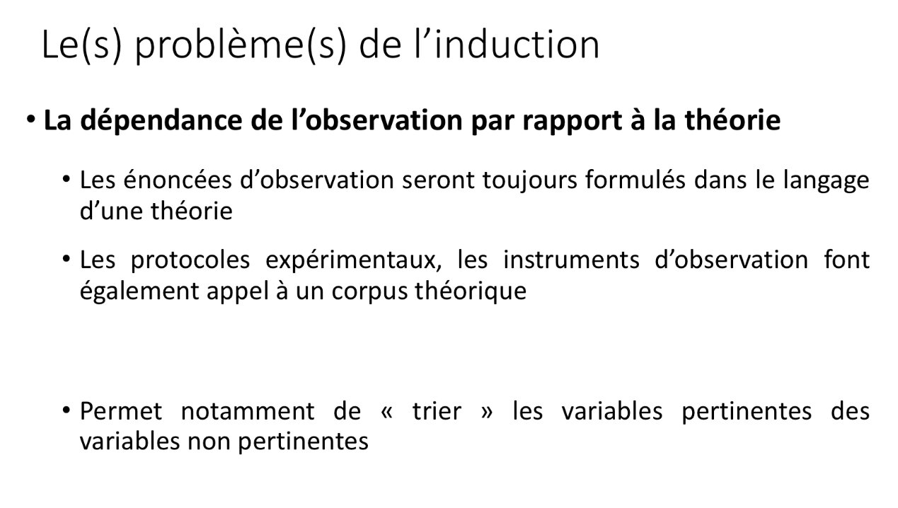 Responsable Matière Solution lucasdlng Posted November 7 Responsable Matière Solution Posted November 7 Coucou ! Je te conseille de consulter cette page là pour bien comprendre la notion si tu en ressens le besoin : Concernant le QCM, il n'y a aucun point de vue à adopter : le QCM demande les limites de l'induction, qui sont mentionnées clairement dans le cours sans adopter de vision particulière. Globalement, les QCM en SSH restent majoritairement fidèles aux diapositives. Des fois, ce sont même des phrases de cours qui sont reprises! Concernant le 4C, il est donc bien FAUX : on se base sur une observation pour en faire une généralité et donc une théorie. La théorie dépend donc de ce que l'on a observé ! On est donc sur une dépendance de l'observation par rapport à la théorie, puisque c'est cette observation qui va être le squelette même de la théorie formulée ensuite. Dis-moi si c'est clair pour toi, et passes une très belle fin de journée! Courage pour ces dernières semaines <3 Quote