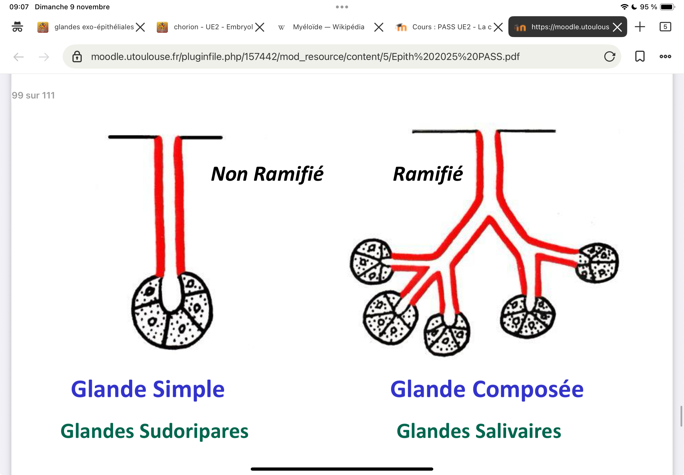 Marcophage Posted November 9 Author Posted November 9 Aussi, QC20: D: Une glande composée présente un canal excréteur non ramifié correction: VRAI Sur la diapo, on voit justement qu'une glande composé possède un canal ramifié. Ai-je tort ? merci Quote