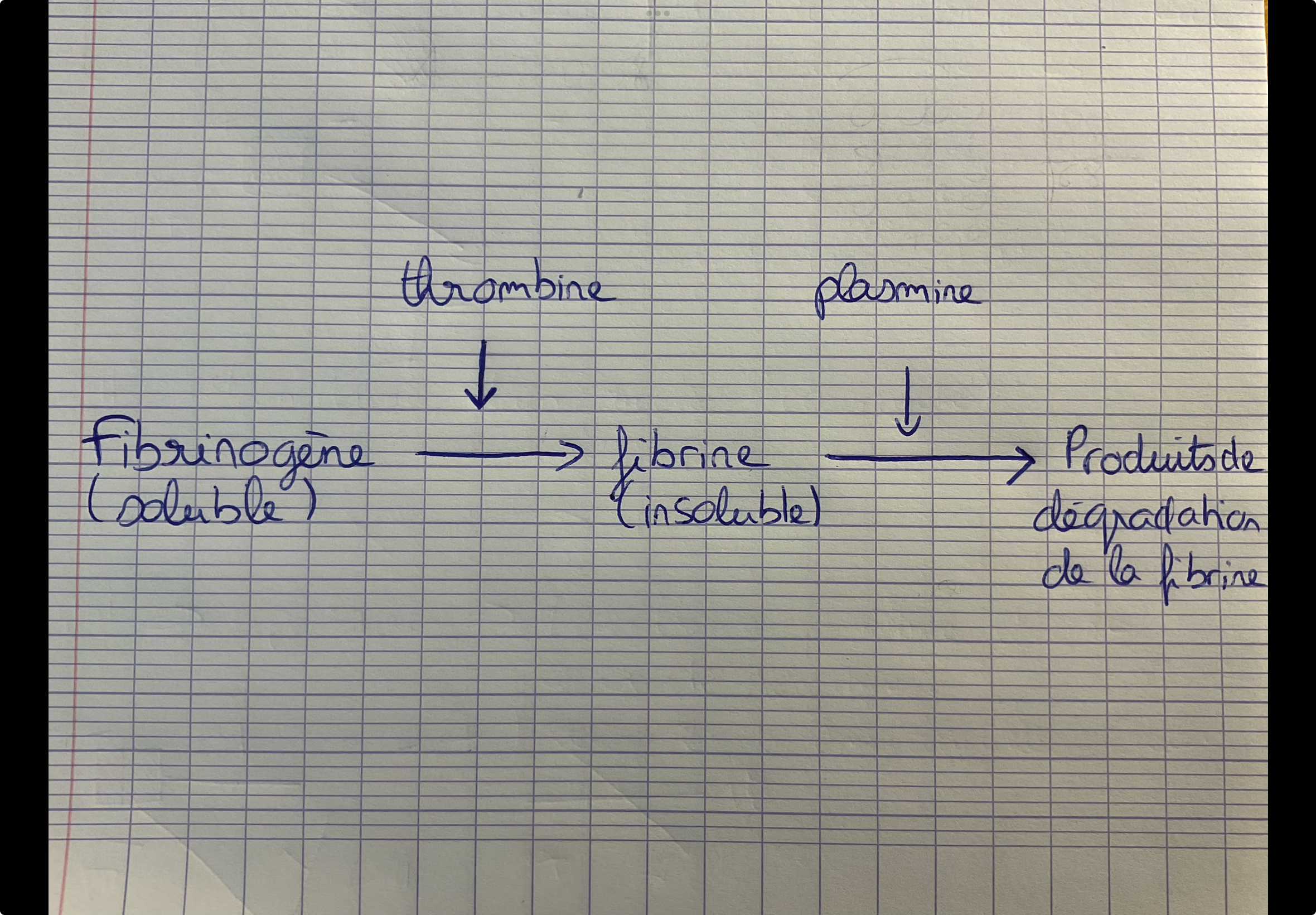 Tuteur Solution Chemisette27 Posted November 9 Tuteur Solution Posted November 9 Coucou! Alors en réalité, le fibrinogène est le précurseur de la fibrine. Cela signifie que sans fibrinogène, tu n’auras pas la formation de fibrine. La plasmine elle intervient après la formation du caillot de fibrine. Elle intervient dans l’étape de la fibrinolyse et permet la dégradation de la fibrine en produits de dégradation de la fibrine. Je te joins un petit schéma, peut-être que ça te rendra les idées plus claires. Tristandinite and Chlo-rophylle 1 1 Quote