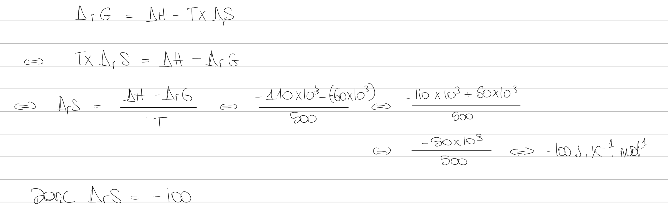 Salut, j'ai eu quelques petits problèmes pour isoler l'entropie dans l'équation de l'enthalpie libre.