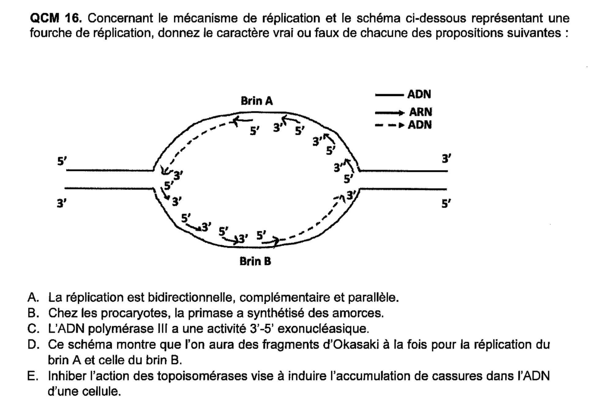louisee Posted November 11 Posted November 11 Bonjour, je ne comprends pas la 16D, ni sa correction ((VRAI) Comme la réplication est bidirectionnelle, il n'y a pas qu'un brin tardif et qu'un brin précoce, tout dépend du sens de progression de l'hélicase. Si l'ADN polymérase va dans le même sens que l'hélicase alors on parlera de brin sens et on aura un brin continu. Si au contraire l'ADN polymérase va dans le sens inverse de l'hélicase alors on parlera de brin sens et on aura un brin discontinu aussi appelé fragments d'Okazaki.) merci ! Quote